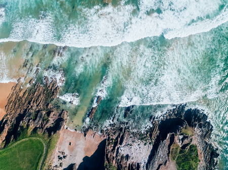 Aerial view of a rocky beach in Asturias, northern Spain