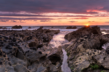 Stunning sunset on the beach at Sandymouth near Bude North Cornwall England UK Europe
