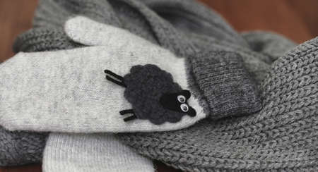 Warm mittens on dark color background
