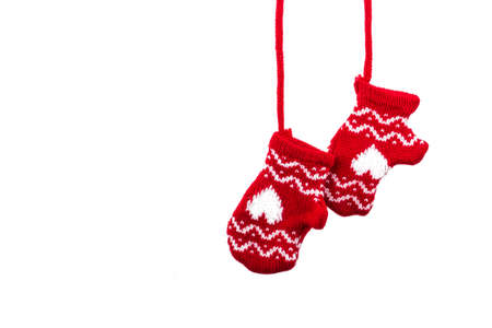 Christmas mittens are isolated on a white background.