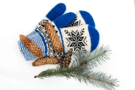 Winter mittens isolated on white background