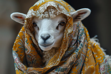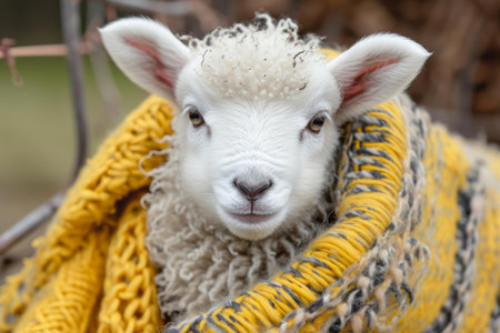 This sheep exudes personality while wearing stylish sunglasses and a cozy knitted scarf, creating a whimsical and amusing visual that captivates attention.