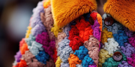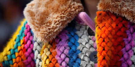 closeup of colorful woolen pullover on hangers in a women fashion store showroom