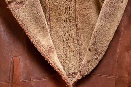 winter women's brown sheepskin coat as a background, natural winter coat, fur coat collar