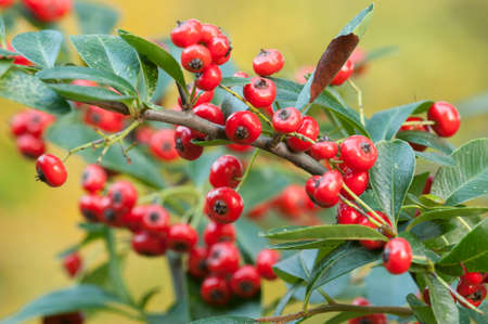 Scarlet firewthors red berries close up detail detail, pyracantha coccinea