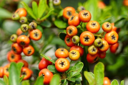 pyracantha, bright beautiful decorative red and orange berries on bushes
