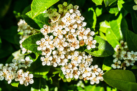 Scarlet firethorn flowers - Latin name - Pyracantha coccinea