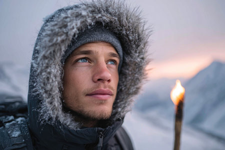 Adventurer in Snow with Torch