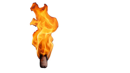 Burning match on a black background, its vibrant orange glow representing warmth, ignition, and potential energy.