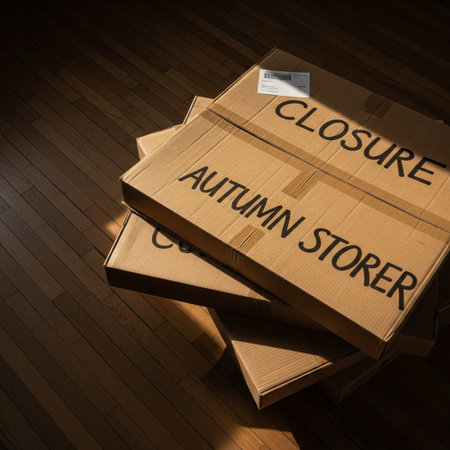 A person standing in a clothing store, holding a cardboard box filled with items.