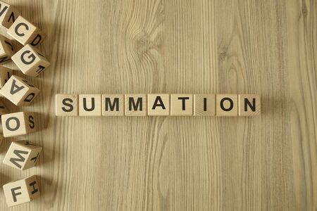 Word summation from wooden blocks on desk