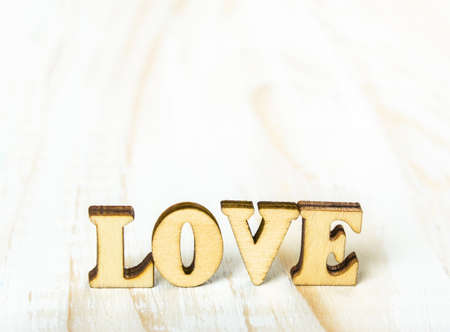 Close-up word love from carved wooden letters on the boards