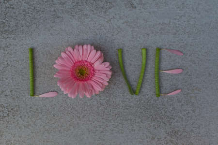The word “LOVE†made of flowers.