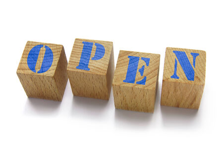 wood blocks with open word on white background