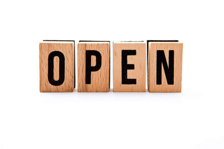 Open - wooden block letter with white background