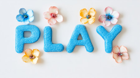 Colorful Floral Arrangement Spelling Out the Word PLAY in an Artistic and Vibrant Style on White