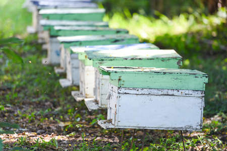 Hives in the apiary - selective focus
