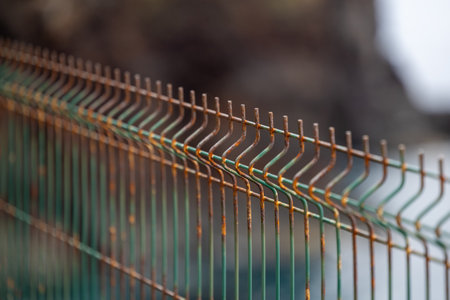 fence with metal grid in perspective, background
