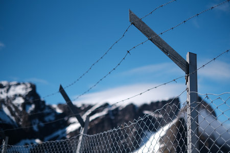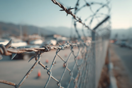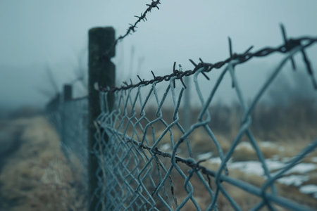 With blurry barbed wire rod fence. Created with Generative AI technology