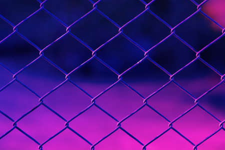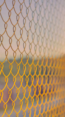 Chain link fence at sunset with sun rays. Abstract background for design.
