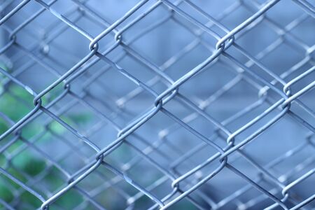 Design with chain link fence steel wire mesh on blurry background