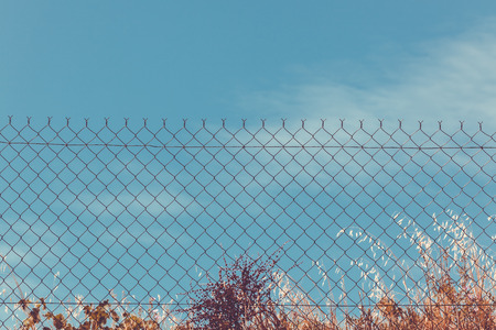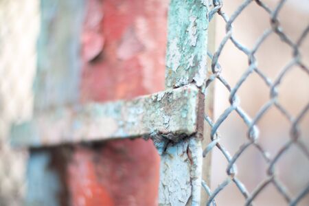 Rusty Chain Link Fence of steel netting on blur background. wired metal fence in vintage tone.