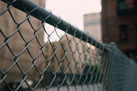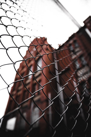 Chain link fence separating urban spaces during daylight