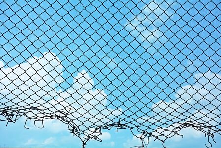 damage cage metal wire on blue sky with cloud in summer - background