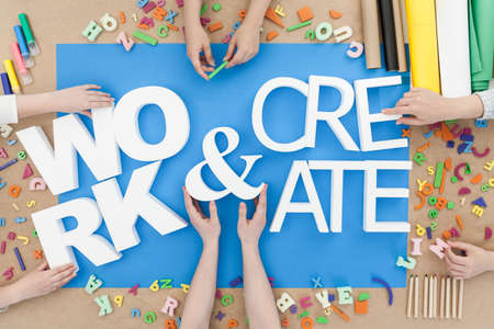 Work and create built from white letters