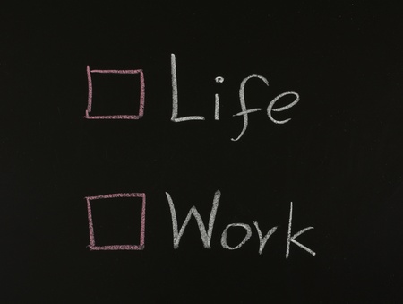 Work and life check boxes on a blackboard background