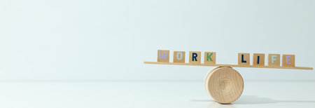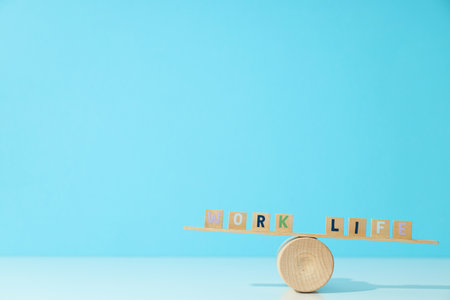 Work life balance concept. Wooden cube block with word WORK and LIFE on seesaw