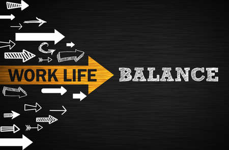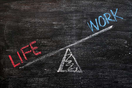 Balance of Life and Work drawn with chalk on a wooden blackboard