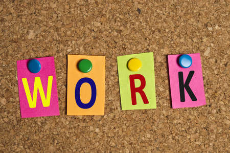 The word WORK written on colorful stickers many times. Motivating work concept.