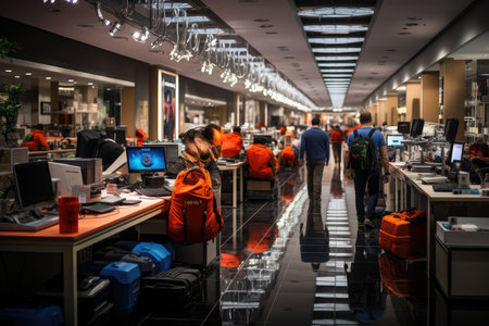 A candid shot of a worker scanning barcodes on boxes, surrounded by shelves filled with tech devices, emphasizing the logistics involved in inventory management. --ar 3:2 --v 6 Job ID: 0a95ca65-4c32-4447-8b6f-1a79dd0abc88