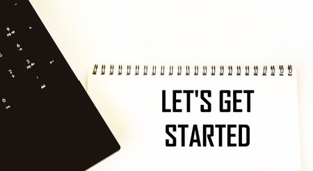Lets get started symbol. Concept words Lets get started on wooden blocks. Beautiful pink background with alarm clock. Business and Lets get started concept. Copy space.