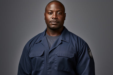 Couple of African manual workers in overalls, indoor portrait