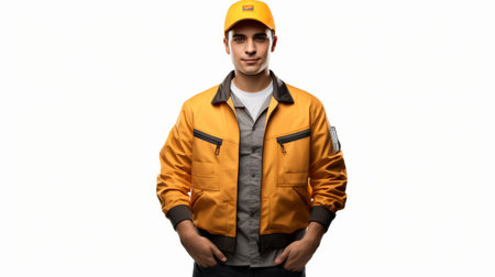 Construction worker in uniform on white background for construction industry concept