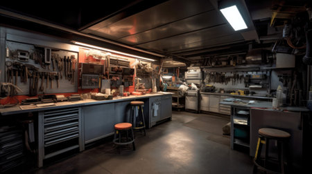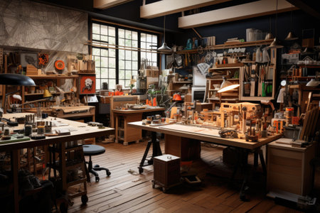 Workshop A space designated for woodworking metalwor. AI generated illustration