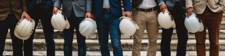 The close up picture of the group of the engineer with hardhat and standing next to the each other, the engineer require skill like technical experience, management and the communication skill. AIG43.
