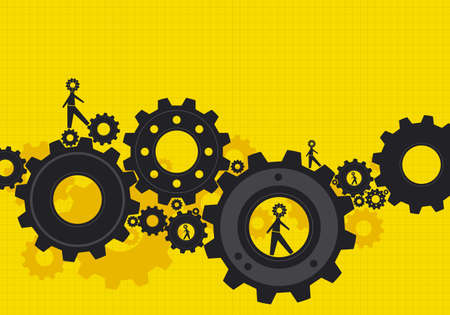 Silhouettes of figurines and cogwheel