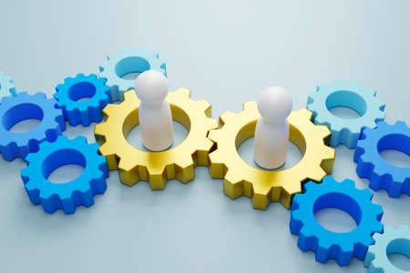 Gears and figures as a symbol of teamwork and collaboration.