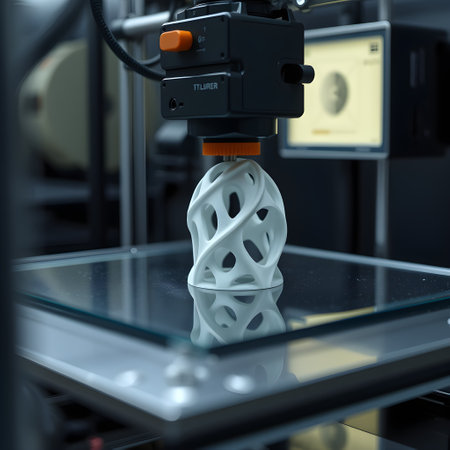 A cutting-edge 3D printer crafting a detailed object, showcasing innovation, precision, and advanced technology in modern manufacturing.