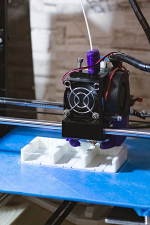3D printer working in a factory printing plastic part.