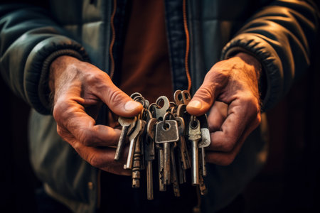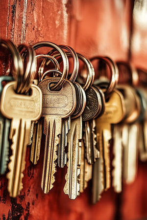 A collection of vintage keys placed on a table. This image can be used to represent concepts such as antique, nostalgia, security, or unlocking mysteries.