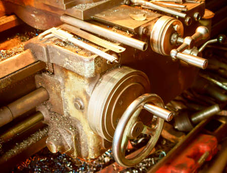 Vintage lathe machine in the factory. Vintage lathe machine.