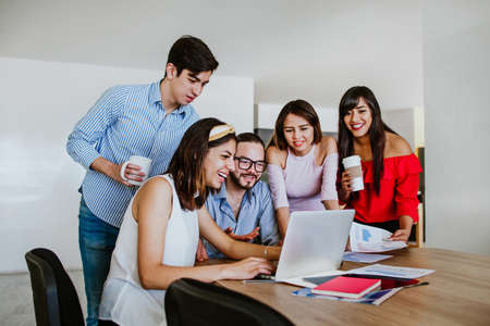 Successful hispanic teamwork or Group of latin young business people working together in creative office in Mexico or South America