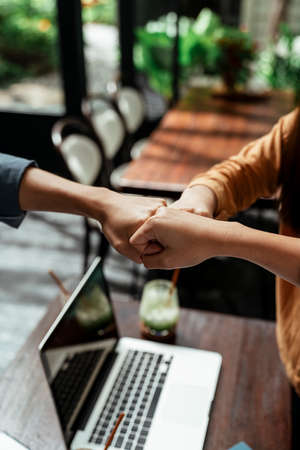 close up success business deal with doing fist bump of business people (teamwork or partnership concept)