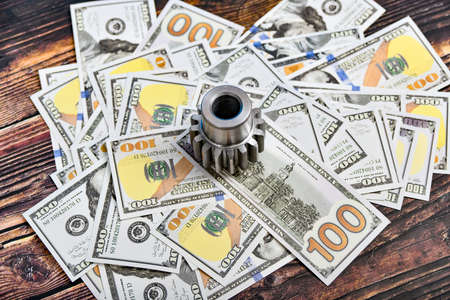 Close up of gears and bearings of modern industrial machine. Industrial background