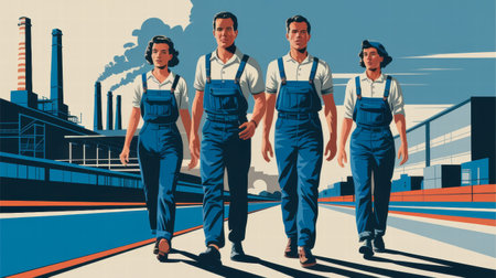 Workers in uniform, created with Generative AI technology.