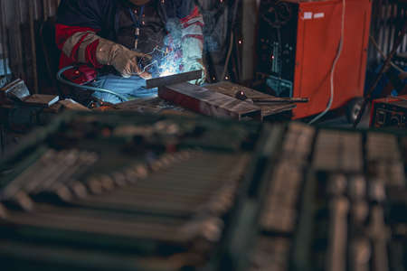Welding work, Man Welding in Workshop. Metalwork and Sparks. Construction and Industrial concept.